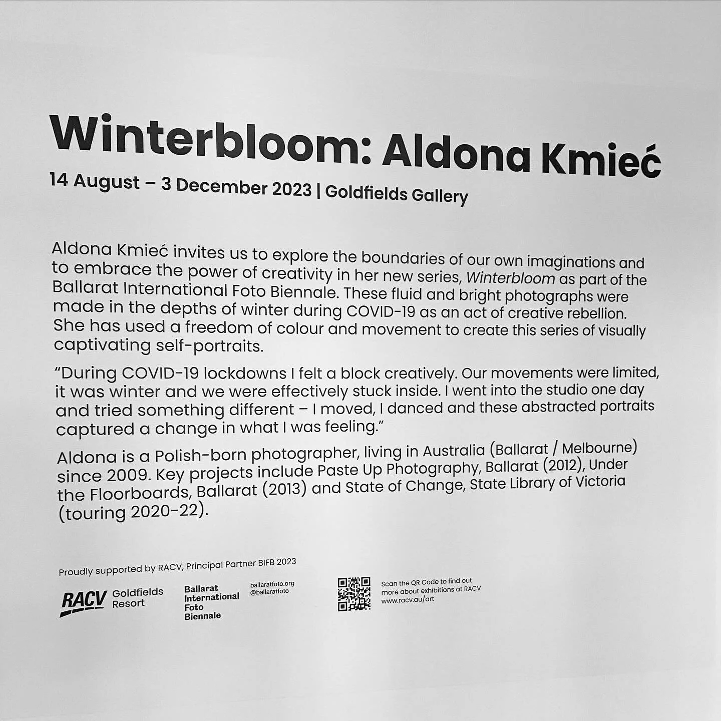 Aldona Kmieć invites us to explore the boundaries of our own imaginations and to embrace the power of creativity in her new series, Winterbloom. Curated by Ellen Wignell as part of the Ballarat International Foto Biennale (BIFB). These fluid and bright photographs were made in the depths of winter during COVID-19 as an act of creative rebellion. She has used a freedom of colour and movement to create this series of visually captivating self-portraits.